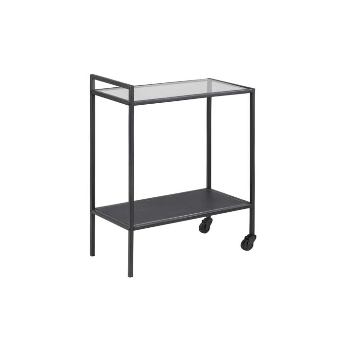 Притежава 2 рафта, горният рафт е изработен от прозрачно стъкло, а долнят е създаден в черен мат. Налични са 2 колела и удобна дръжка, които позволяват лесно позициониране на количката в предпочитан за вас ъгъл.