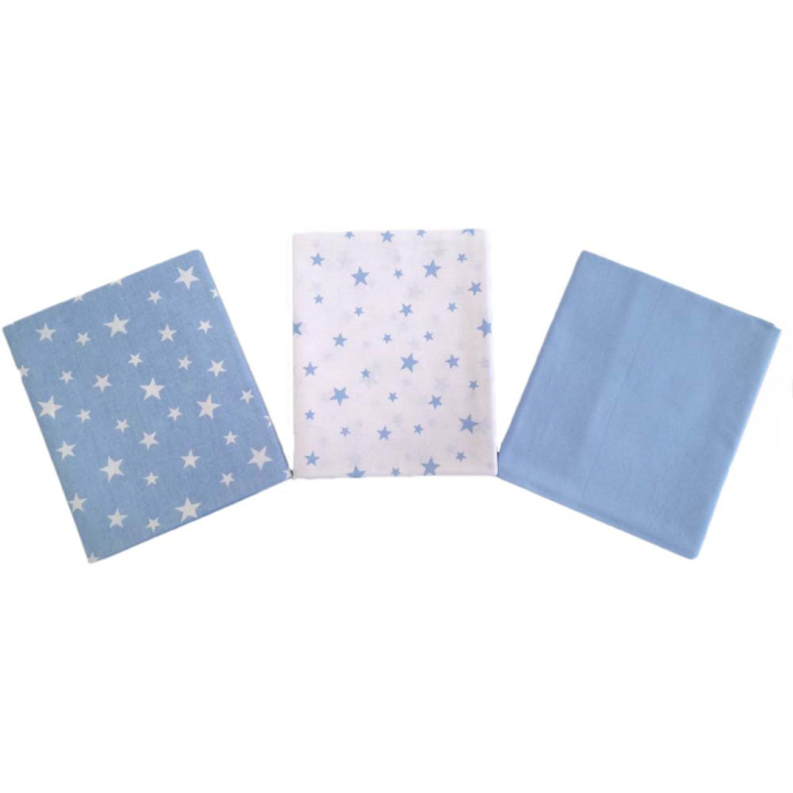 Комплект 3 бр памучни пелени 80/80: Тегло - 0,3 кг. Размер на пелената: 80/80 см Състав на плата: 100% памук