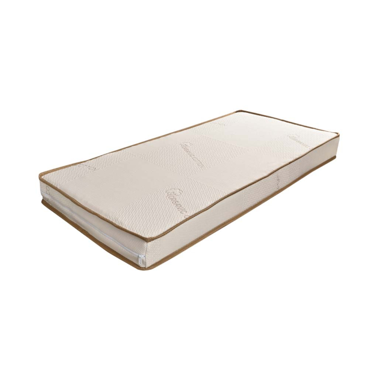 Матракът е изработен от две кокосови вложки с дебелина по 1 см всяка и 8 см висококачествена пяна/дунапрен, придаващи оптимална стабилност и гъвкавост на матрака. Кокосът допринася за анатомично правилната опора на гръбначето на бебето и не позволява задържането на влага. Калъфът е с цип на 3 от страните, което позволява лесно сваляне и пране. Висококачествен плат от плетен текстил.