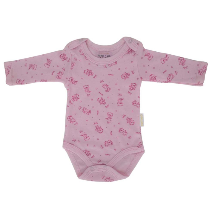 Розово памучно боди с дълъг ръкав и принт на мечета, 56 см, 0-1 м.