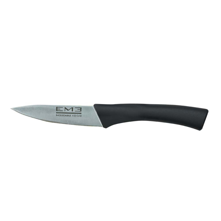 Готварски нож, изработен от неръждаема стомана със сатенирано покритие и полипропиленова черна дръжка.