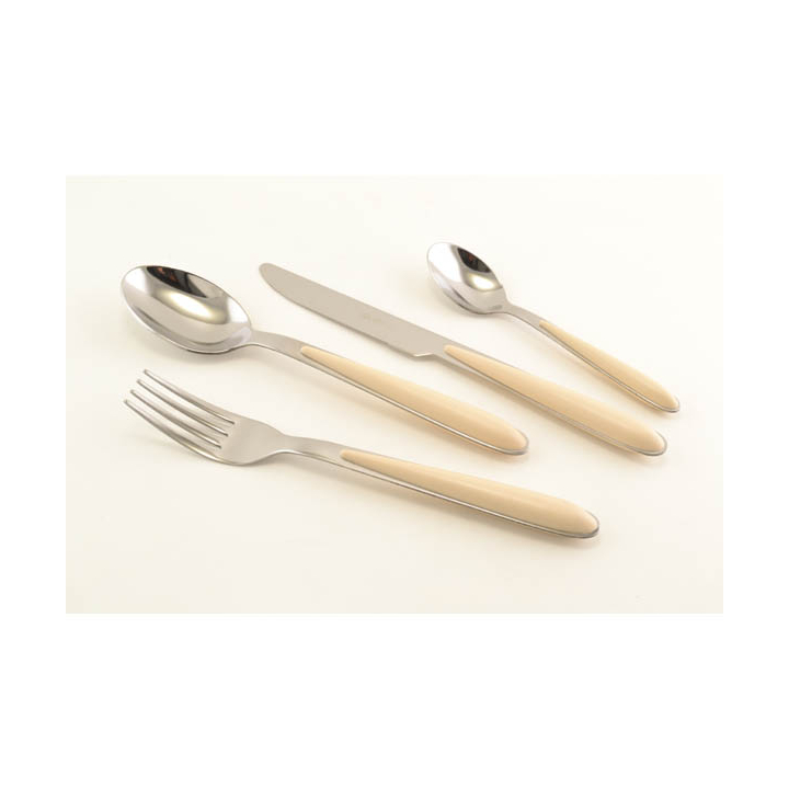 СЕТ 24 бр. прибори за хранене от неръждаема стомана 18/0 с полирано покритие и ултразвуково заварена дръжка от ABS в светлобежов цвят (крем).