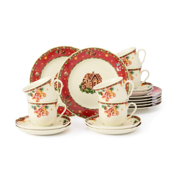 Комбиниран коледен сервиз за кафе и торта, 18 части