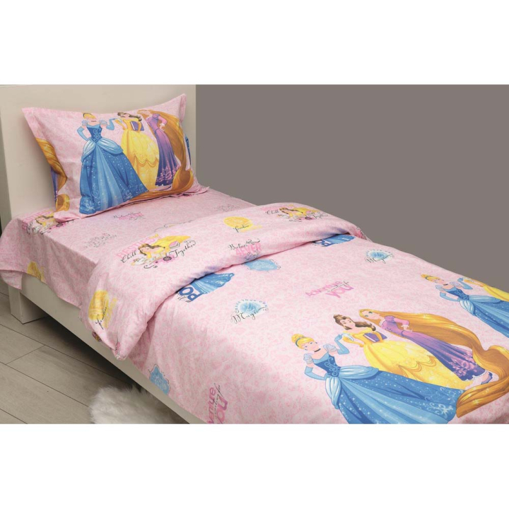 Приказна картина ще изпълни с вълшебство стаята и ще приюти малката ви феичка в уютната прегръдка на принцесите в цветни рокли... Естествената материя е с висока плътност, мека и нежна към детската кожа, без да причинява алергии или зачервявания. Комплектът е с гарантирано високо качество и обещава запазване на първоначалния вид след многократно изпиране.