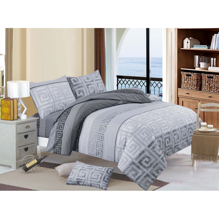 Памучен спален комплект от 5 части с геометричен дизайн в сиво
