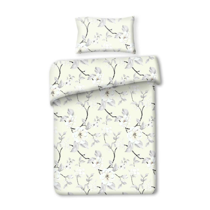 Спален комплект от 2 части в бежово с флорална декорация, 100% памук ранфорс