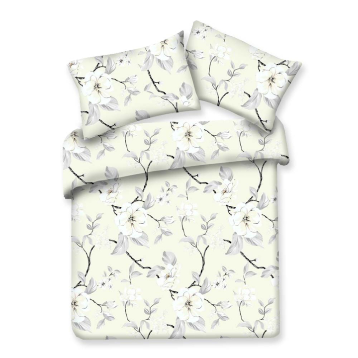 Спален комплект от 3 части в бежово с флорална декорация, 100% памук ранфорс