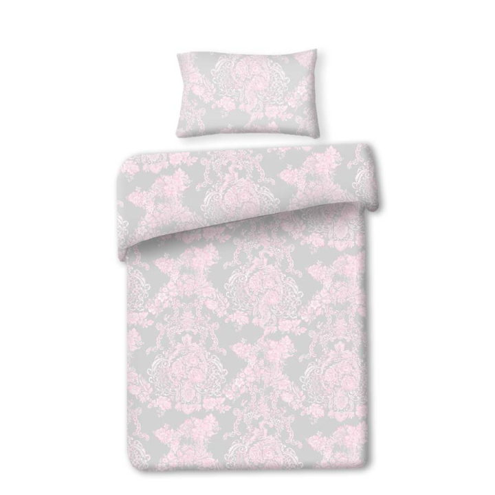 Спален комплект от 2 части в розово и сиво, 100% памук ранфорс
