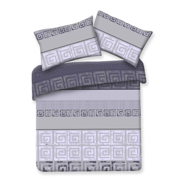 Спален комплект от 3 части в сиво с геометрична декорация, 100% памук ранфорс