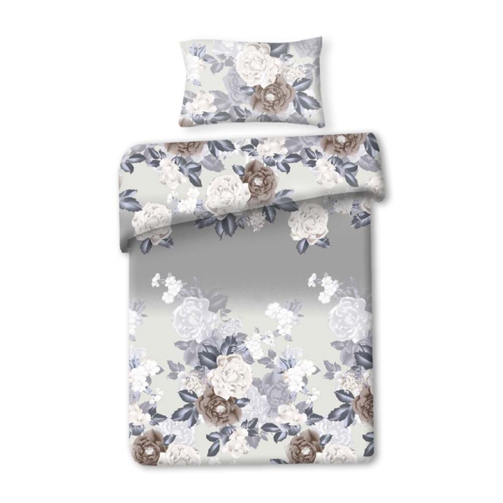 Спален комплект от 2 части в сиво с флорална декорация, 100% памук ранфорс