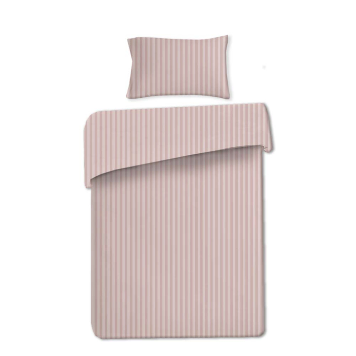 Спален комплект от 2 части в розово райе, 100% сатениран памук