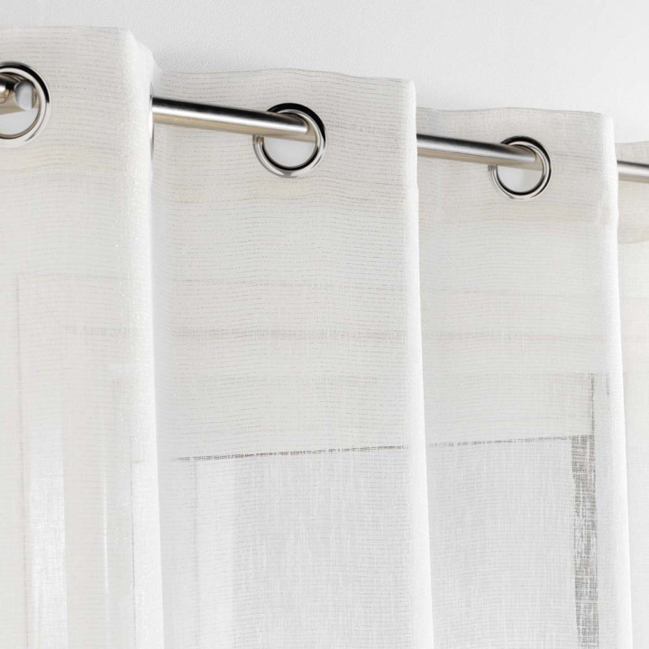 Тънко бяло перде с фини златисти линии, с вградени капси за закачане на тръбен корниз, 140/240 см.