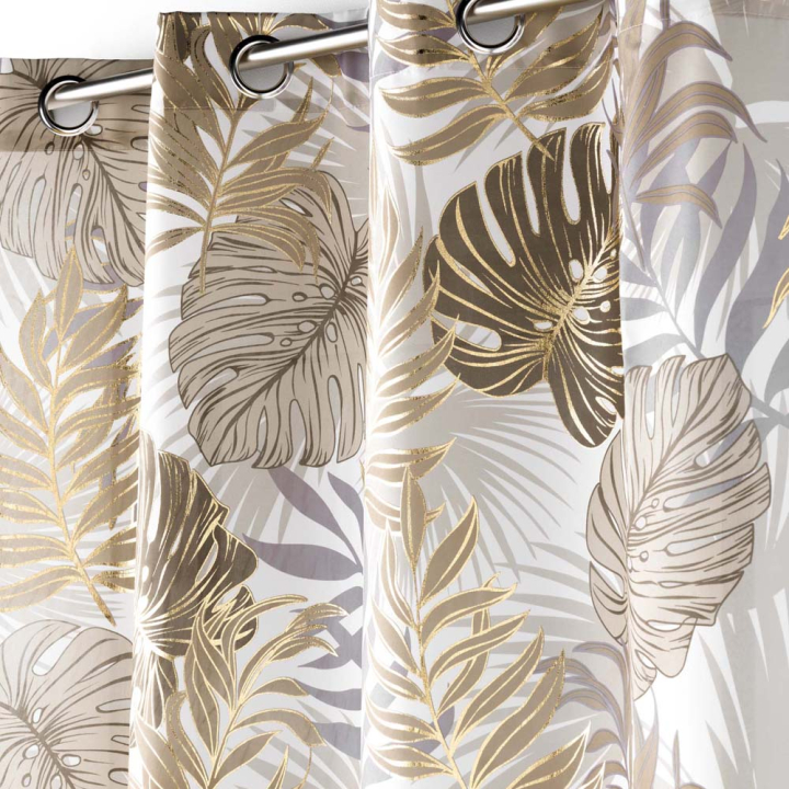 Плътно перде с бежово-сиви флорални мотиви и златисти оттенъци, с капси за закачане на тръбен корниз, 140/260 см