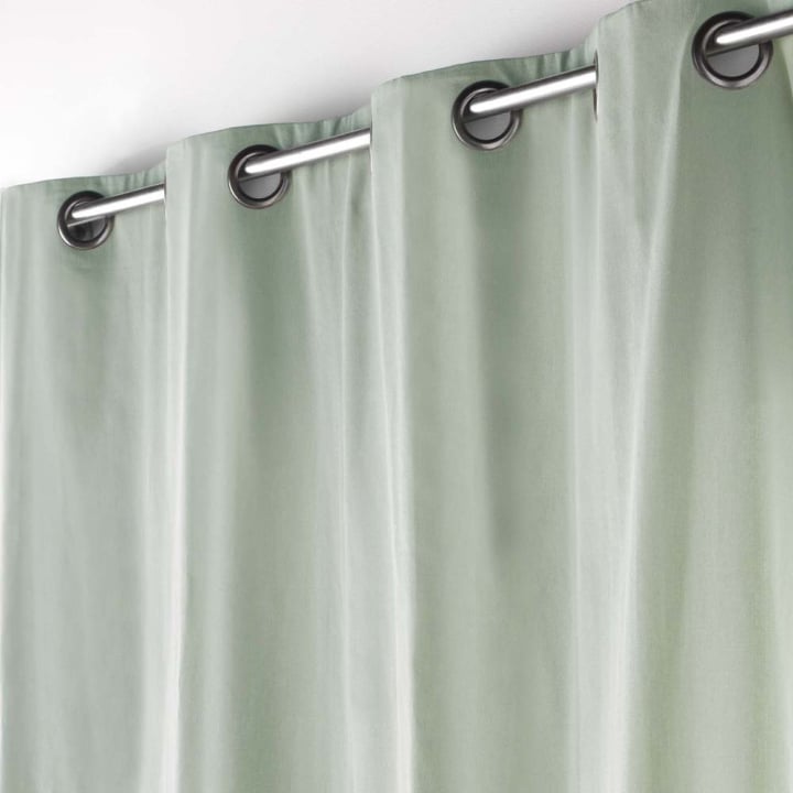 Плътно зелено перде с капси за закачане на тръбен корниз, 135/260 см