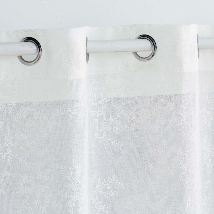 Ефирното бяло перде е с фини флорални елементи, които ще внесат нежност във всяко помещение. Деликатната материя и плътност позволяват на светлината да проникне в стаята и да я озари, за да създаде уютна атмосфера.