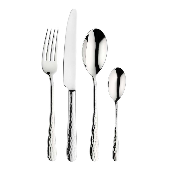 Комплект прибори за хранене от 24 части, изработен от неръждаема стомана със сребристо покритие.