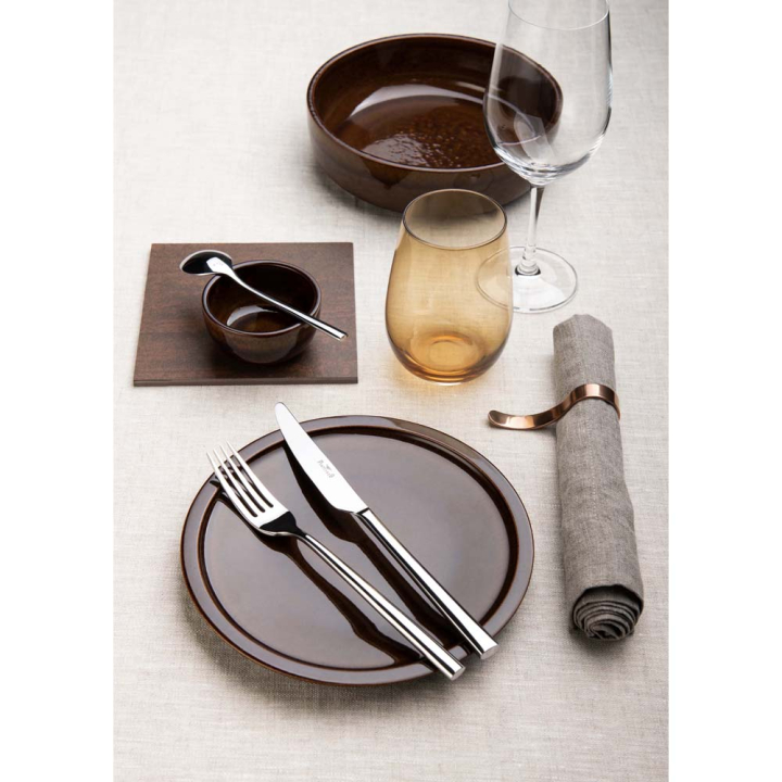 Визията на този елегантен комплект прави впечатление с фини линии на дръжките и закръглени форми на лъжиците. Полираната сребриста повърхност придава естетически чар, подходящ както за ежедневието, така и за празничните моменти. Дръжките са ергономични, проектирани без риск от хлъзгане в ръката.