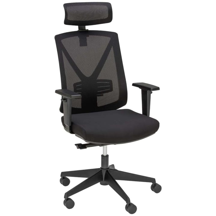 Офис стол с размери Ш:62/Д:65/В:119 см. Моделът притежава съвременна визия в съчетание с удобна седалка и облегалка с регулируеми подлакътници. Тапициран е с висококачествен тъкан текстил, 100 % полиестер устойчив на механично износване и захабяване. За удобното позициониране на стола моделът разполага с газов амортисьор с регулируема височина, петлъчева рамка с универсални колелца, както и възможност за завъртане на 360°.