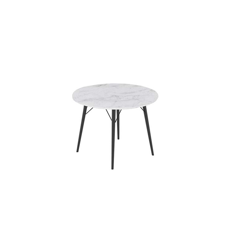 Елегантна кръгла трапезна маса с размери Ф100/75 см. Масата се състои от кръгъл плот, произведен от MDF с дебелина от 18 мм, монтиран на четири черни крака. Стилно допълнение към трапезарията или кухнята.