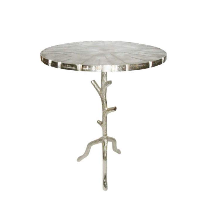Помощната маса Бизар впечатлява със своя артистичен дизайн и скулптурна визия, вдъхновена от природата. Изработена от алуминий със сребрист финиш, тя съчетава изтънченост и оригиналност, превръщайки се в изразителен акцент за всеки интериор. Извитите ѝ крака напомнят формата на клони, а релефната повърхност на плота придава усещане за естествена текстура. Със своя уникален стил и фина изработка, Бизар е не просто мебел, а истинско декоративно бижу, което ще внесе индивидуалност и артистичен дух във всеки дом.