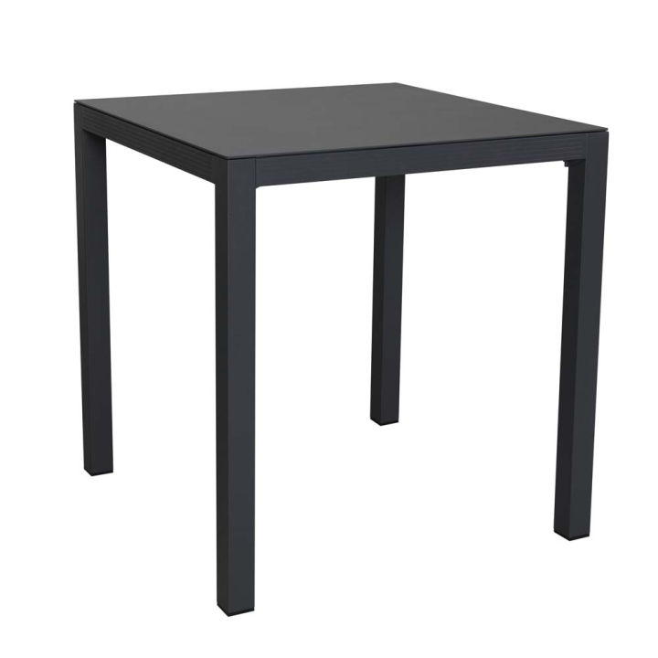 Градинска бар маса в сив цвят с алуминиева конструкция и стъклен плот, 90/90/94.5 см