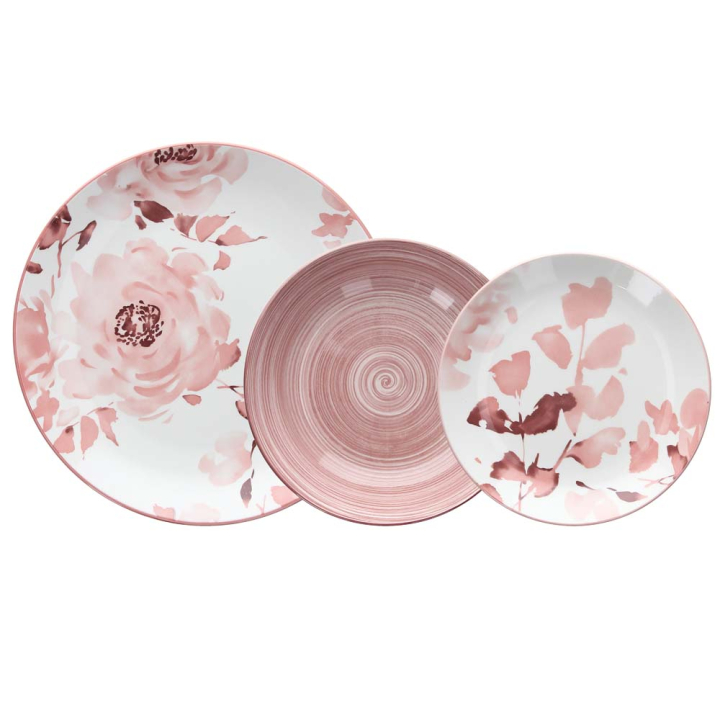 Сервизът е с дизайн с лек руж, който се разлива по порцелановата повърхност и носи усещане за свежест и топлина. Неговата палитра от бяло и розово създава усещане за спокойствие. Този сервиз е идеален за онези моменти, в които искате да обгърнете трапезата с атмосфера на близост и нежност, както за специален повод, така и за спокойната вечеря у дома.
