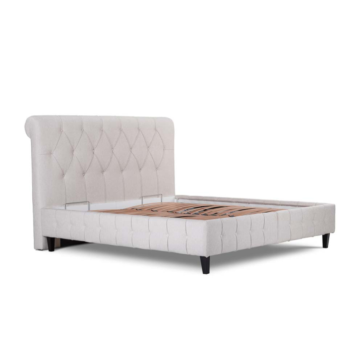 Поставено на 4-черни, дървени крачета леглото има своята устойчива конструкция. Налична е и подматрачна рамка, а матракът трябва да закупите отделно, спрямо вашите предпочитания за комфорт и удобство като разгледате предложенията ни от Категория: "Матраци".