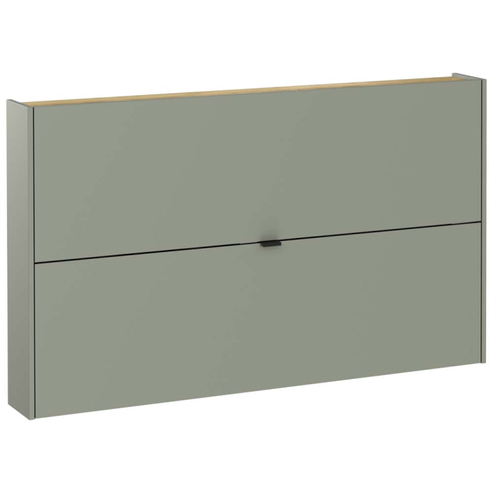 Стенен шкаф за обувки Амека с 2 врати в декор дъб навара и зелено, размери: 140/19/85 см