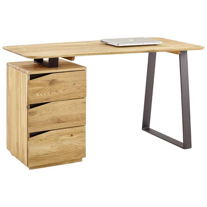 Това бюро съчетава здравината на метала с топлината на естествения див дъб, създавайки перфектния баланс между модерния индустриален стил и уюта на дома. Дизайнът му е изчистен, но впечатляващ – с U-образни метални крака и плътен дървен плот с омаслена повърхност за гладко и приятно усещане при допир.