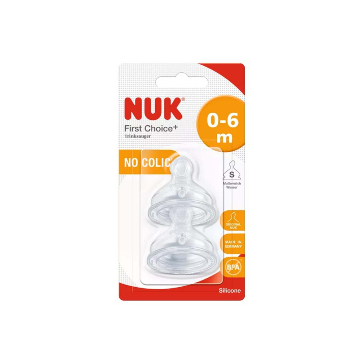 NUK FIRST CHOICE биберон силикон 0-6 м, р-р S - подходящ за течности като кърма, чай и вода