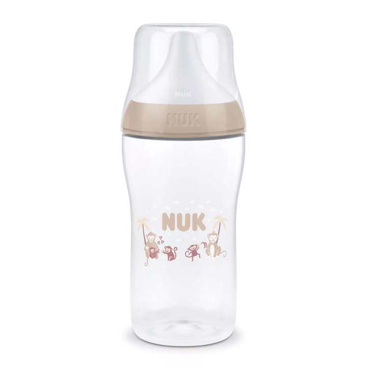Инструкции за поддръжка и употреба: Винаги проверявайте температурата на храната преди да нахраните детето. Не използвайте биберона за хранене като биберон-залъгалка. Преди първа употреба стерилизирайте всички компоненти. Не превишавайте максимално допустимата температура от 100°C. Сменяйте биберона на всеки 1 до 2 месеца. За почистване използвайте бебешкия препарат NUK или друг мек миещ препарат.