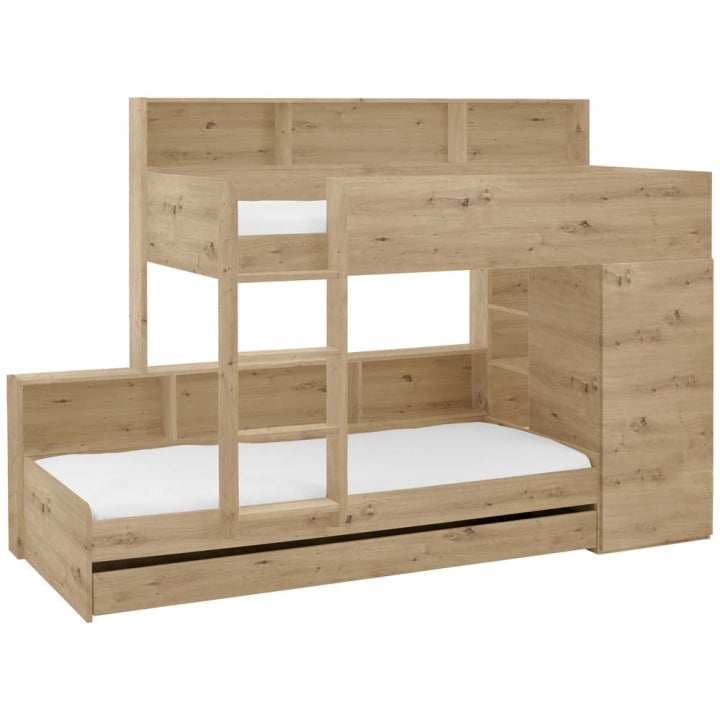 Функционално двуетажно легло в декор - дъб артисан с размер: 258.6/181/111 см