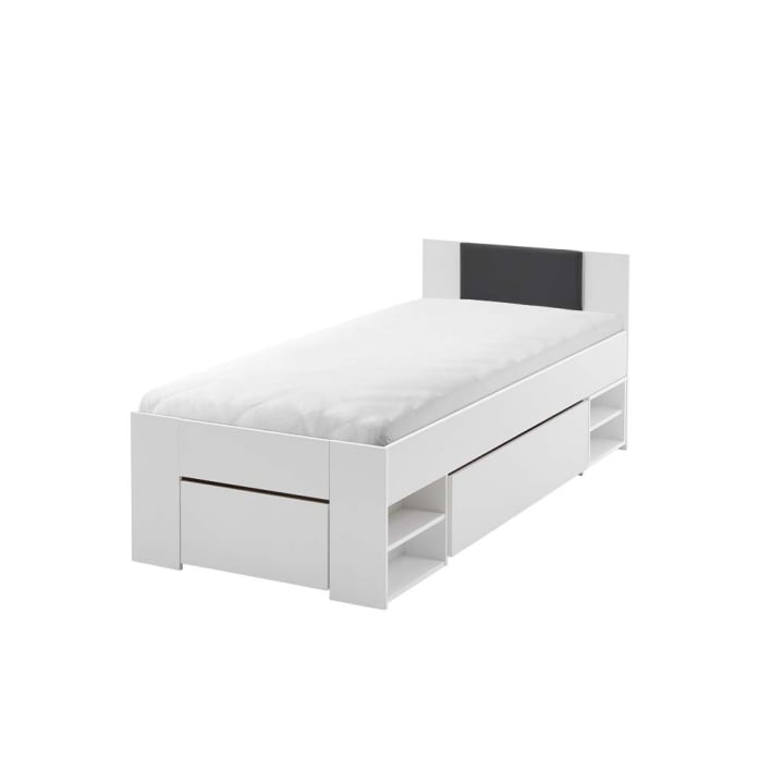 Функционално легло с площ за сън - 90/200, изработено в бял цвят с размери: 203/93/80 см