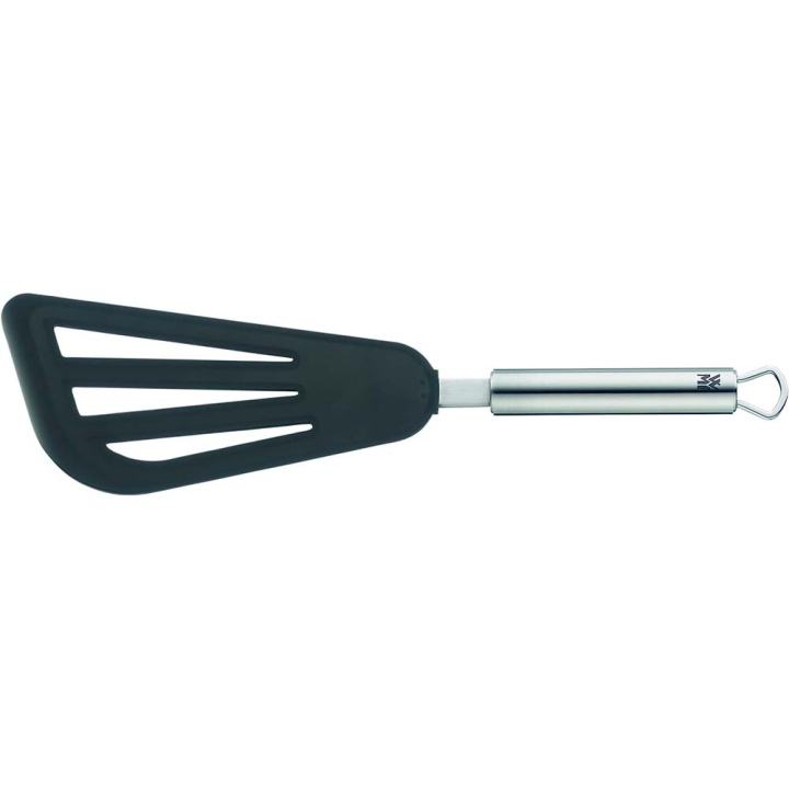 Сплесканите ръбове на тази шпатула лесно се плъзгат под храната за идеално обръщане, повдигане и сервиране. Безопасна е за използване върху всички видове съдове за готвене - перфектно защитава незалепващите покрития.