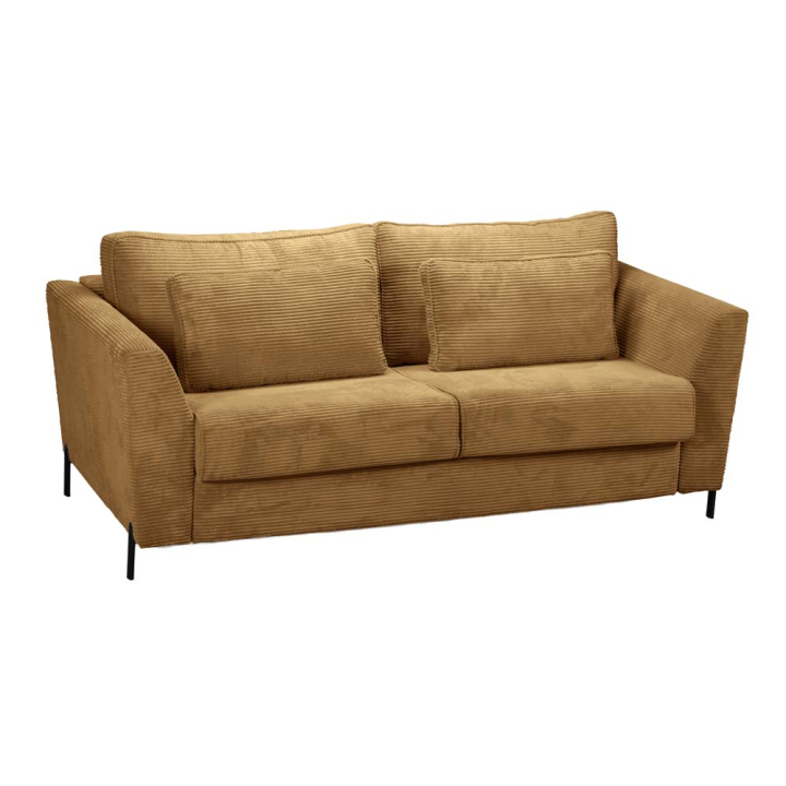Канапе с функция сън в текстилна дамаска цвят горчица, размери: 208/94/92 см