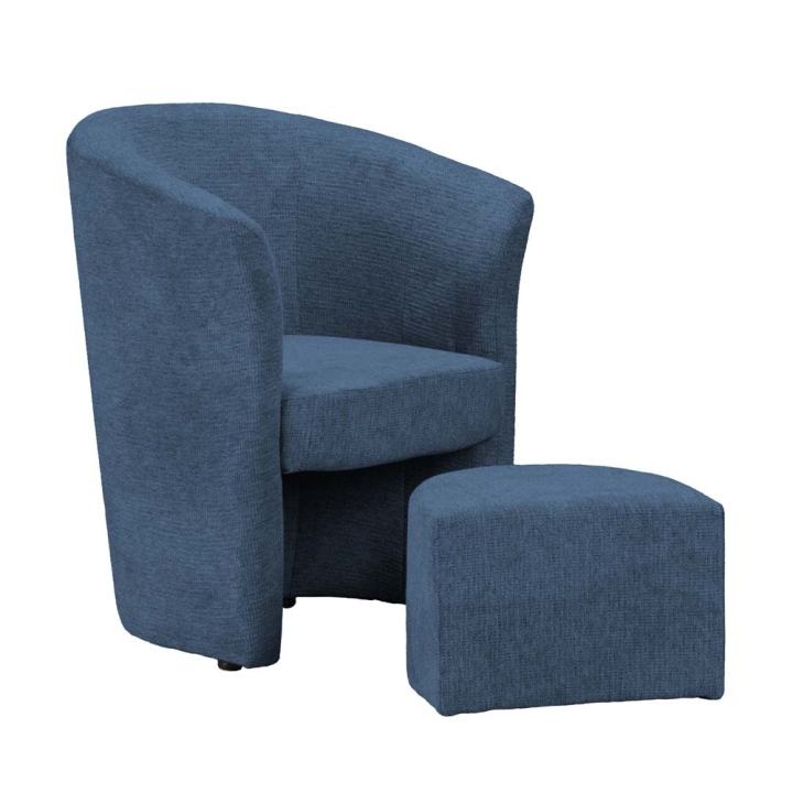 Елегантен фотьойл + табуретка в синя текстилна дамаска – перфектен за дома и офиса, размери: 64.5/59.5/78 см
