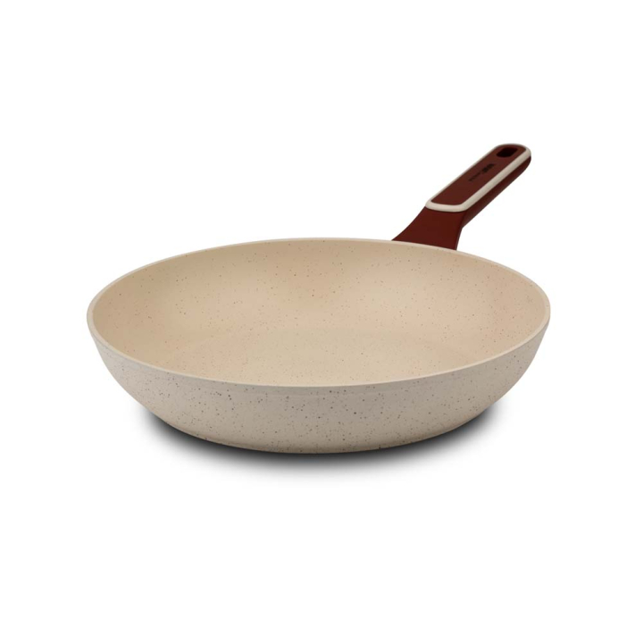Бежов тиган с 3 слоя гранитно незалепващо покритие и кафява дръжка, Ф28 см