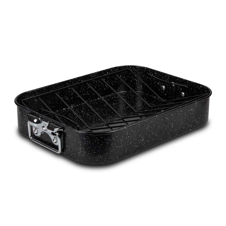 Съдът е изработен от въглеродна стомана, която осигурява равномерно разпределение на топлината и чудесни резултати при печене. Незалепващото каменно покритие позволява лесно изваждане на ястието, както и безпроблемно почистване след употреба.