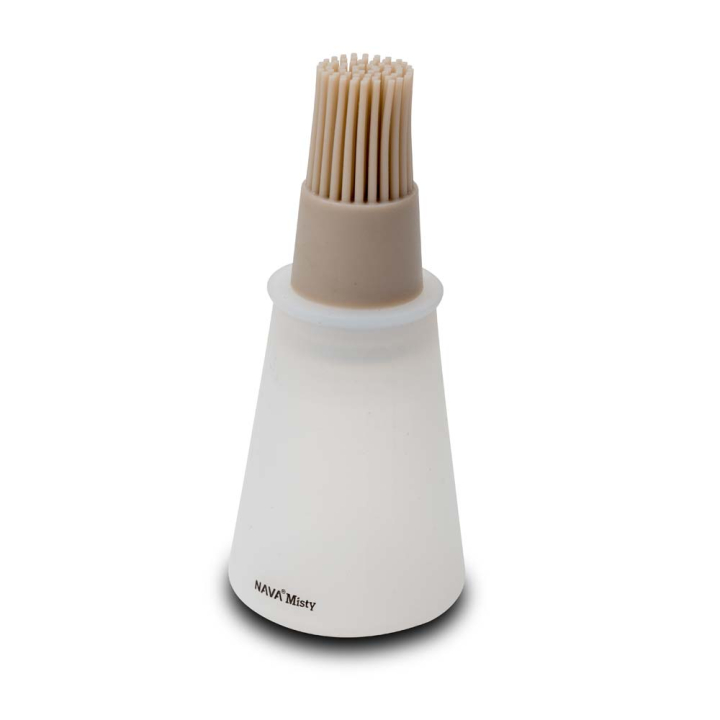Необходима както при готвене, така и при печене на сладкиши, иновативната силиконова четка Misty от NAVA с подвижен контейнер за зехтин и олио ще ви стане любима! Тя е перфектна за намазване с масло, зехтин или олио на тигана, грила, тавата или самата храна. Без използване на допълнителни съдове, без замърсяване и стичане - чиста и прилежна работа.