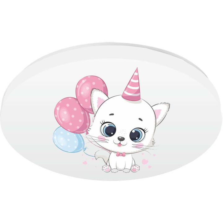 Сладка почти колкото вашата малка принцеса, очарователната плафониера ще украси тавана с чар и светлина! Зарадвайте момиченцето вкъщи, като допълните детската му стая с весела лампа, от която винаги ще се усмихва празнуващото коте с розова шапка и свежи балони.
