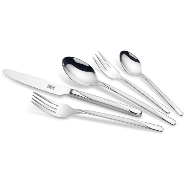 Нежно извити форми, частично матирани повърхности и гланцирана стомана - хармонични контрасти, които превръщат тези прибори в празничен акцент на масата с предназначение за използване и всеки ден... Ножовете с кухи дръжки и остриета от хром-молибденова стомана създават приятно усещане в ръката, а дръжките на останалите прибори са издължени и елегантни, проектирани за хранене с финес.
