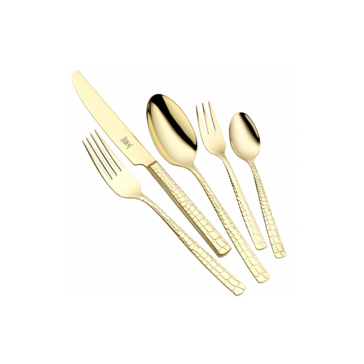CROCO GOLD сет прибори за хранене от 30 части, изработени от неръждаема стомана със златисто покритие и фина орнаментика по дръжките.