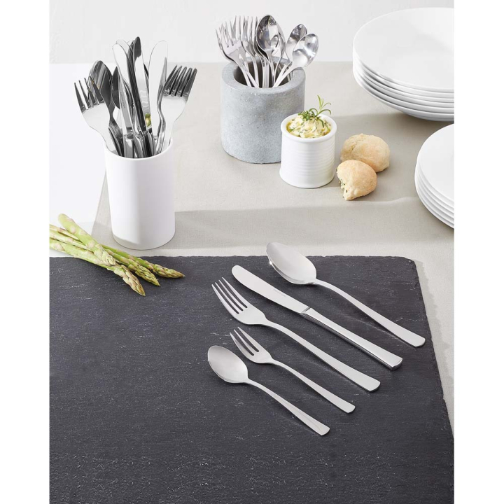 Този комплект прибори за хранене от 60 части оформя класически елегантен облик на вашата маса. Идеален е за ползване в ежедневието, както и за всеки специален повод. Семплата и изчистена визия предлага универсално приложение и адаптиране към интериори с разнообразен стил.