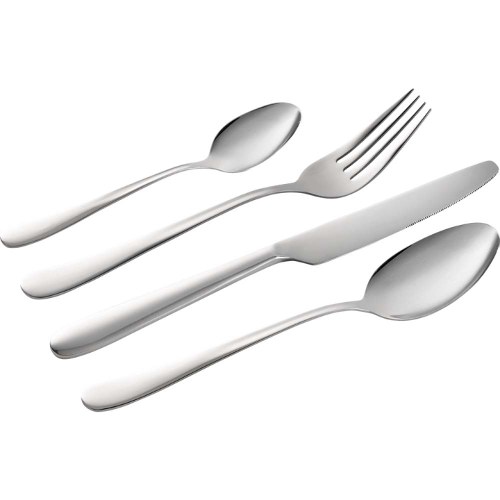 Този комплект прибори за хранене от 24 части оформя класически елегантен облик на вашата маса. Идеален е за ползване в ежедневието, както и за всеки специален повод. Семплата и изчистена визия предлага универсално приложение и адаптиране към интериори с разнообразен стил.