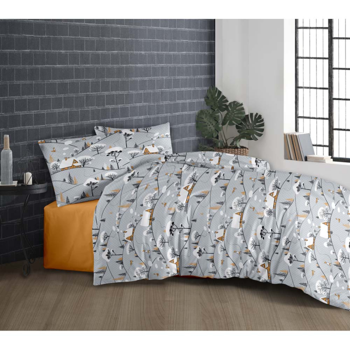 Спален комплект от 4 части с коледни мотиви в сиво и жълто, 100% памук ранфорс