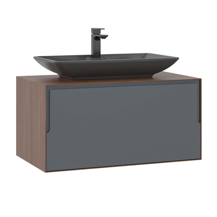 Долен шкаф за баня с мивка в декор орех и антрацит, размери: 80/50/40 см