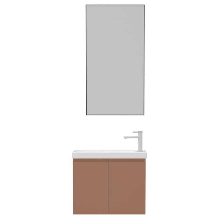 Изчистен и съвременен, комплектът за баня Коуст съчетава естетика и функционалност в хармонично цяло. Долният шкаф с мивка и огледалото оформят практична и стилна зона за ежедневна грижа. Компактните размери правят комплекта отличен избор за по-малки бани, без компромис с удобството, а мекият керемиден нюанс внася топлина и характер в интериора. Стенният монтаж създава усещане за лекота и простор.