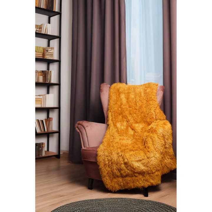 Полиестерно одеяло с дълъг косъм в жълт цвят (горчица), 220/240 см
