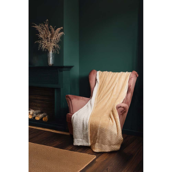 Вечното одеяло, което сгрява и сетивата: от вътрешната страна е плюшена шерпа, за да добави още топлина на тялото в студените и снежни следобеди, а от външната е поларено и елегантно, за да украси дома с колоритен чар. Пробвайте да съчетаете с декоративни възглавнички и се пренесете в света на приказките.