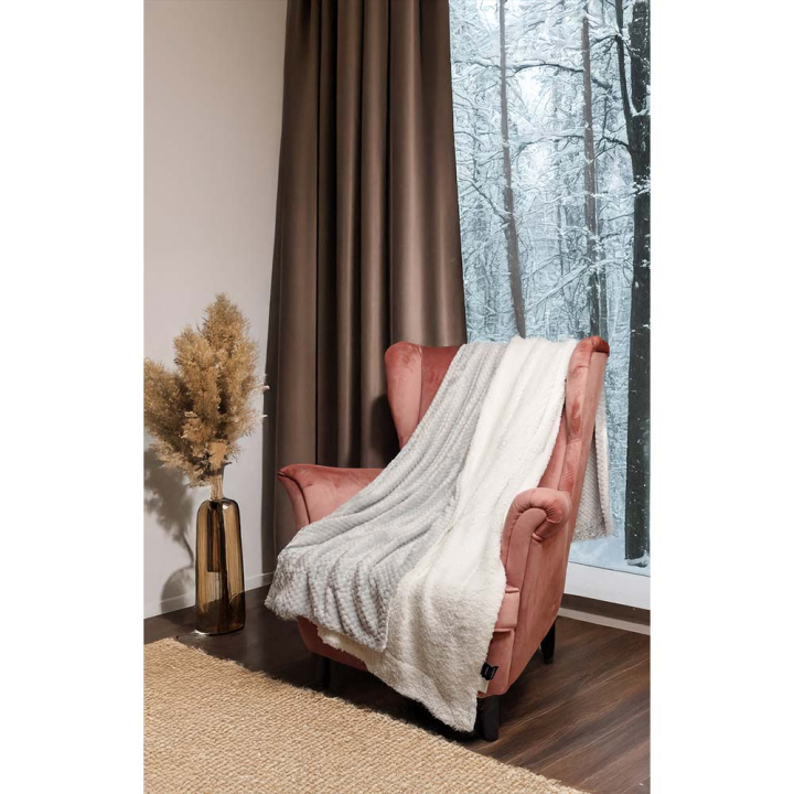 Вечното одеяло, което сгрява и сетивата: от вътрешната страна е плюшена шерпа, за да добави още топлина на тялото в студените и снежни следобеди, а от външната е поларено и елегантно, за да украси дома с колоритен чар. Пробвайте да съчетаете с декоративни възглавнички и се пренесете в света на приказките.